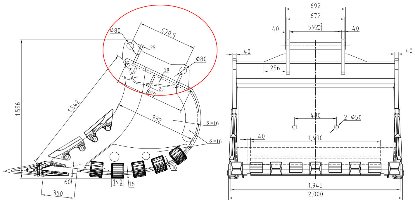 The ribs of sieve bucket is fully used with HB400 steel. Which will be 3 times harder and 4 times stronger and tougher than mild steel.