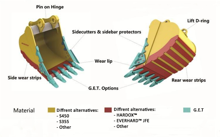 HEAVY DUTY (HD) BUCKETS - DEFINED STEEL GRADES AND HARDNESS